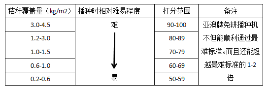 機(jī)具對不同作業(yè)條件的適應(yīng)程度(玉米秸稈還田覆蓋量表)