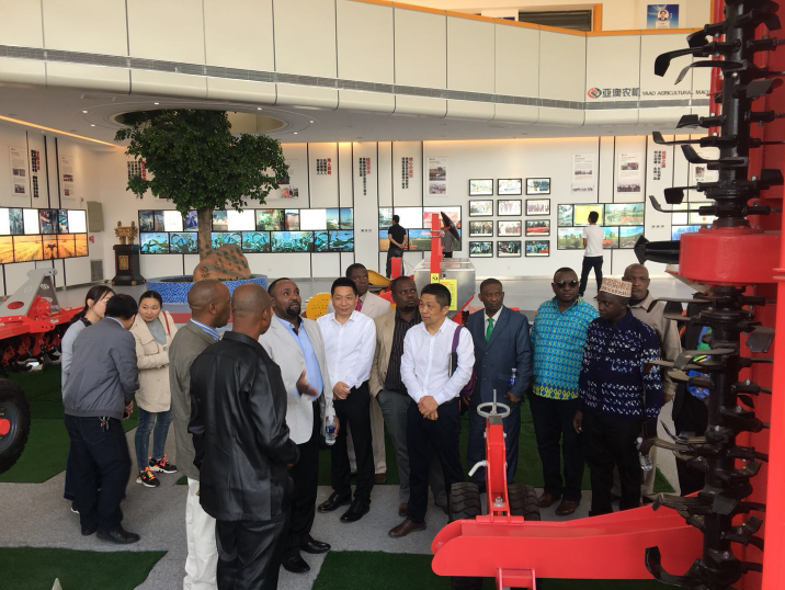 公司展廳的陳列樣品及企業(yè)文化墻、產(chǎn)品技術(shù)專利的照片吸引了國際友人的注意。亨利 Mwatwinza Mwimbe 先生表示,坦桑尼亞農(nóng)業(yè)的發(fā)展得益于中國農(nóng)業(yè)機械化產(chǎn)業(yè)的迅速發(fā)展及對本國的扶助,今天通過亞澳農(nóng)機見證了中國農(nóng)機制造產(chǎn)業(yè)的發(fā)展水平,令世人敬佩。