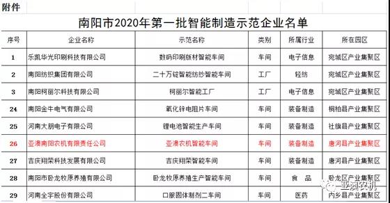 根據(jù)《河南省智能制造和工業(yè)互聯(lián)網(wǎng)發(fā)展三年行動計劃(2018—2020年)》(豫政〔2018〕14號)文件要求,南陽市篩選出的A類企業(yè)名單,是符合集聚區(qū)產(chǎn)業(yè)發(fā)展方向、資源利用效率高、質(zhì)量效益好的企業(yè),是轉型發(fā)展攻堅的引領力量,也是最有條件和能力實施智能化改造的先導群體。將作為河南省產(chǎn)業(yè)集聚區(qū)首批智能化改造推薦企業(yè)。