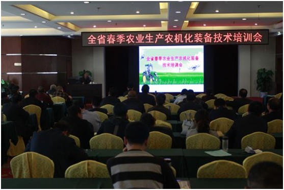 為了貫徹落實全省農機工作會議精神,全面提升我省農機化發(fā)展水平,加快丘陵山區(qū)農機化技術和主要農作物生產(chǎn)全程機械化的發(fā)展。4月23日,山西省農機推廣總站在繁峙縣組織召開了全省春季農業(yè)生產(chǎn)農機化裝備技術培訓會。全省11個市的農機局分管局長、推廣站長、承擔2017年現(xiàn)代農機推廣項目縣農機局局長、推廣站長以及部分貧困縣的縣局財務人員共200余人參加了培訓會。省局左義河局長、張本源總工出席會議并致辭。省局計財處秦啟福處長、科技處郭海鴻處長;省農機研究院米志峰院長;省新技術服務中心王曦主任也應邀參加了會議。會議由省農機推廣總站張玉峰站長主持。