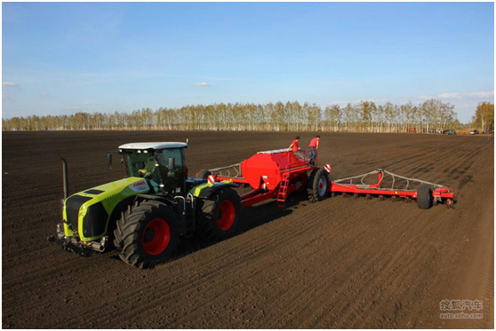 3、科樂收XERION系列剛剛上市的時(shí)候售價(jià)高達(dá)100萬美金。這款采用無級變速的拖拉機(jī)采用卡特彼勒 C13 6 缸發(fā)動(dòng)機(jī),最大功率可達(dá) 401–487 馬力,最高時(shí)速可達(dá)50公里/小時(shí)。